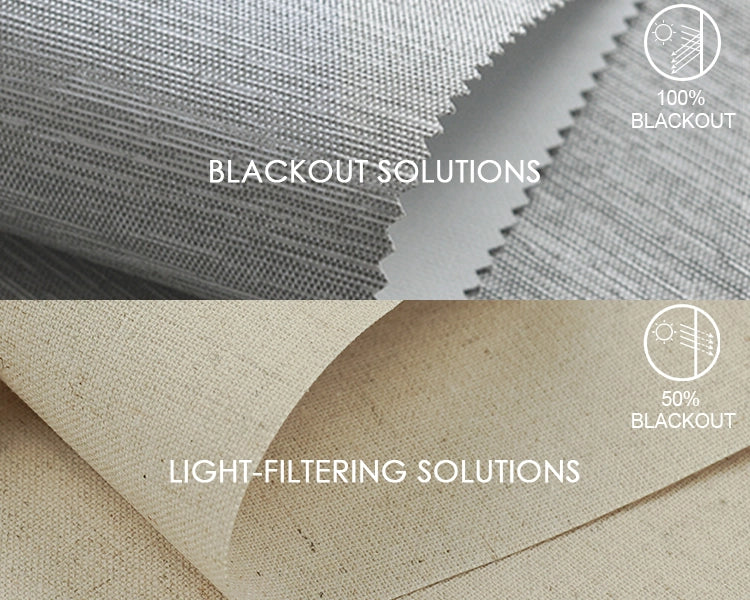 The light-filtering fabric creates a soft, ambient glow, offering privacy without sacrificing natural light. It also protects your interiors from UV damage, making it ideal for enhancing the atmosphere in living rooms, patio doors, or any space needing controlled light. Both fabrics are precisely tailored to meet your needs, offering versatility and style in one solution.