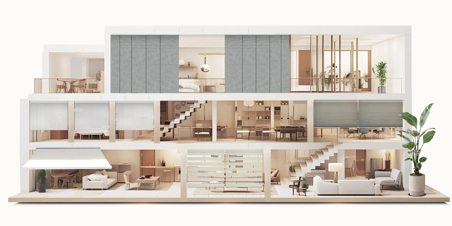 At Yoolax, we specialise in a wide range of motorised window treatments — from rollers and honeycombs to verticals, curtains, and outdoor blinds.