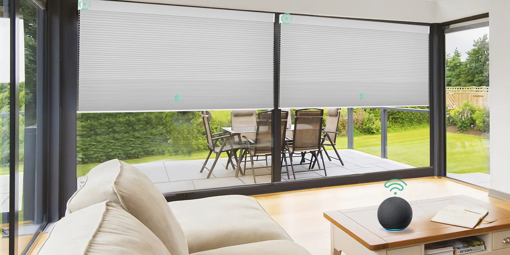 Use the Alexa assistant to control the blinds. For example, say "Alexa,open the blinds" to easily control them.