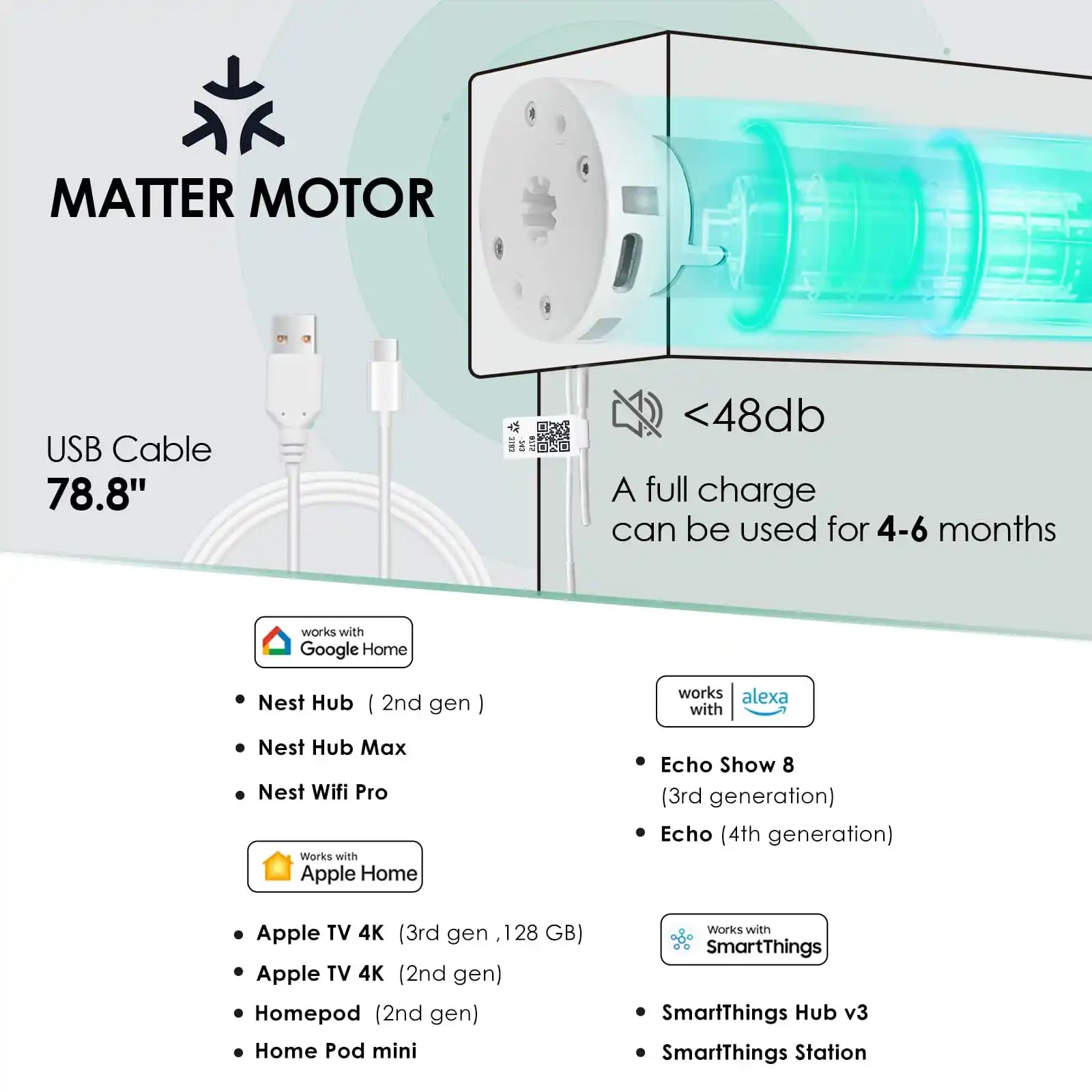 Yoolax Matter motor represents the forefront of smart blind technology. Utilizing the Matter over Thread protocol, it seamlessly connects with major platforms such as Apple HomeKit, Amazon Alexa, Samsung SmartThings, and Google Assistant. This motor allows for intuitive control from your preferred app, providing faster response times, stable connections, and enhanced data security.