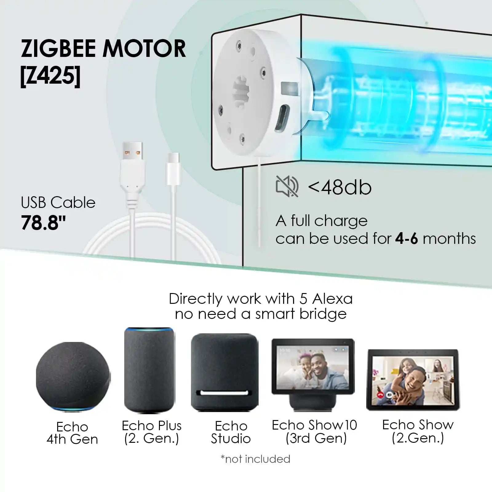 Smart Zigbee Motor: The Zigbee Motor connects directly to Alexa (Echo Plus 2nd Gen, Echo Show 2nd Gen, Echo Studio, Echo Show 10, Echo 4th Gen, Echo Show 8 3rd Gen, and Echo Hub) without needing an extra hub. You could save up to $100–$300, making your electric indoor roller blinds setup more affordable and hassle-free while enjoying seamless smart home integration.